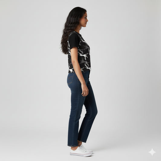 Boxy T-shirt (Waist Length) in Lightweight Jersey 160 – Visionary Leaps Print