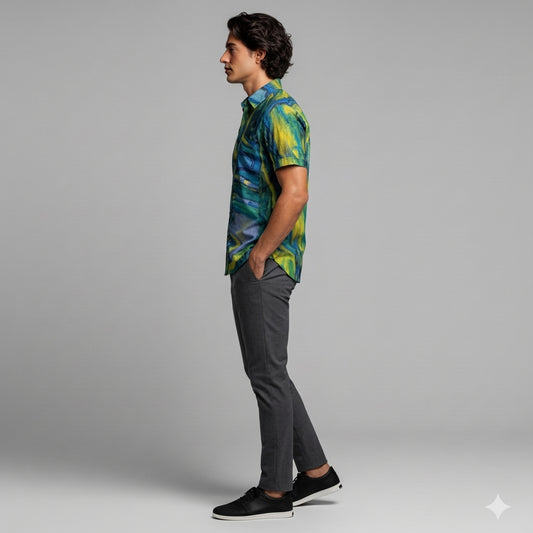 Men's Dress Shirt Green Flowers - Short Sleeve
