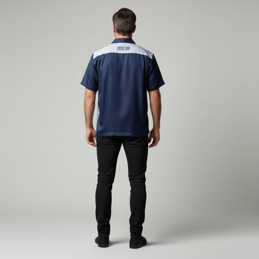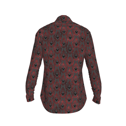 Crown and Lines Silver on Black Structured Linen Dress Shirt with Franklin Spread Collar