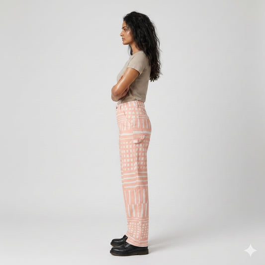 Everywhere Peach Check Carpenter Pants