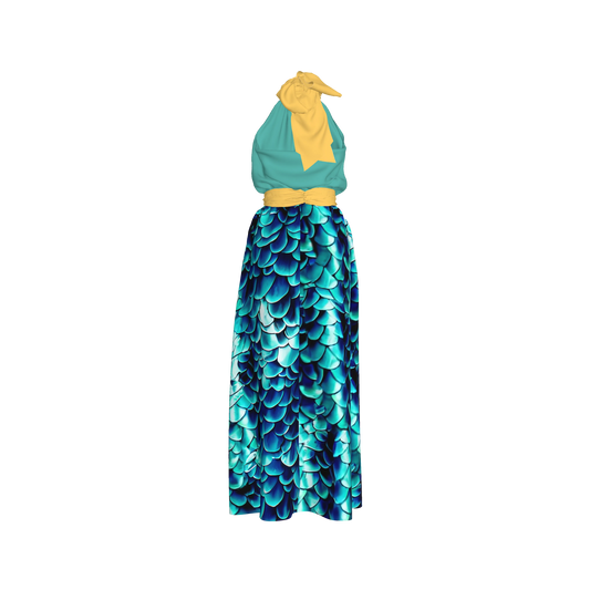 Elastic Waist Halter Maxi in Pima Cotton Poplin