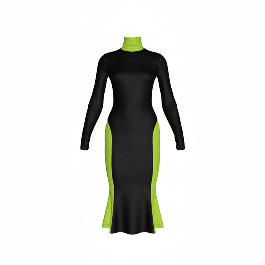 Long Sleeve Turtleneck – Green and Yellow Pattern Minimalist