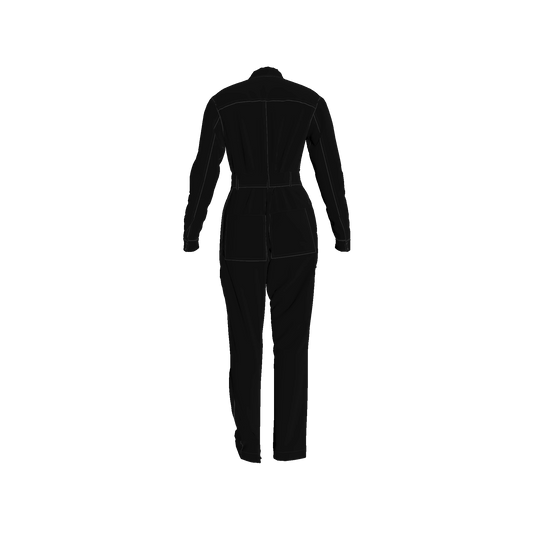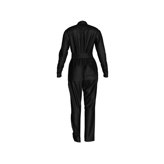 Relax Fit Woven Jumpsuit in Pure Black Pima Cotton Poplin