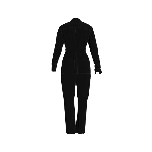 Lightweight Button Front Jumpsuit in Pure Black Ecovero Viscose Crepe