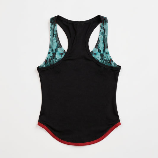 Racerback Tank Mini Dress in Pure Black Cotton-Spandex Jersey