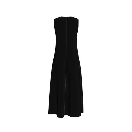 V-Neck A-Line Dress in Pure Black Ecovero Viscose Crepe