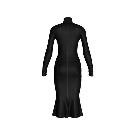 Turtleneck Body Con Dress in Pure Black Cotton-Spandex Jersey