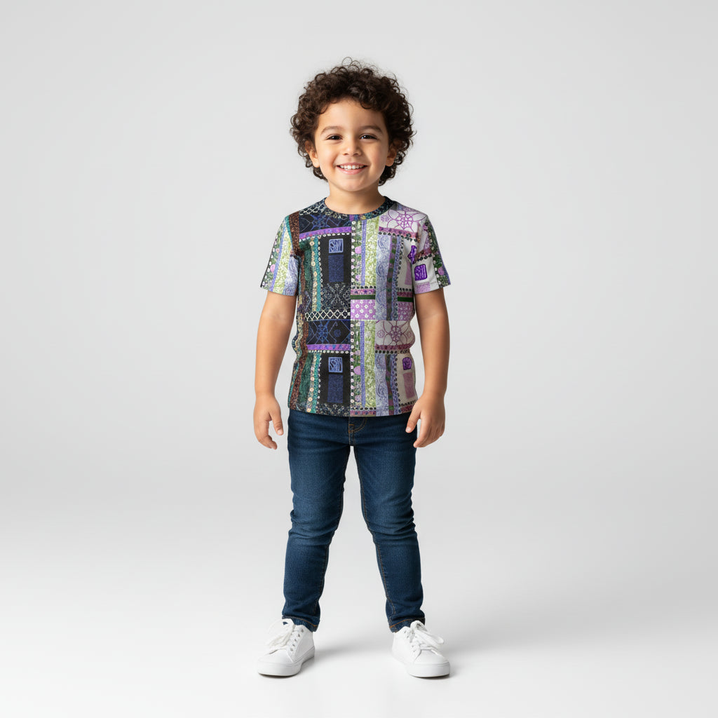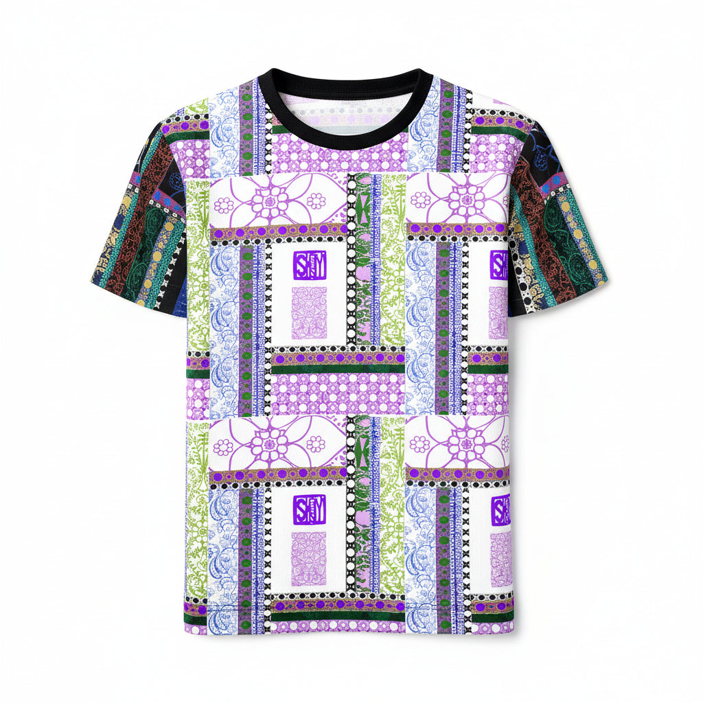 Where vision becomes commerce: Haute Couture 1V2 isn’t just a T-shirt—it’s a cultural collage. Digitally printed in a high-contrast patchwork, the artwork fuses botanical motifs, geometric grids, and signature framed emblems in a palette of lavender, green, turquoise, black, and white. Lightweight bamboo cotton jersey delivers next-gen softness, breathability, and movement—streetwear’s comfort, couture’s complexity. Curated for the creatively fluent, this piece is the next essential layer of the fashion renaissance—multiplying story, context, and culture with every wear.
