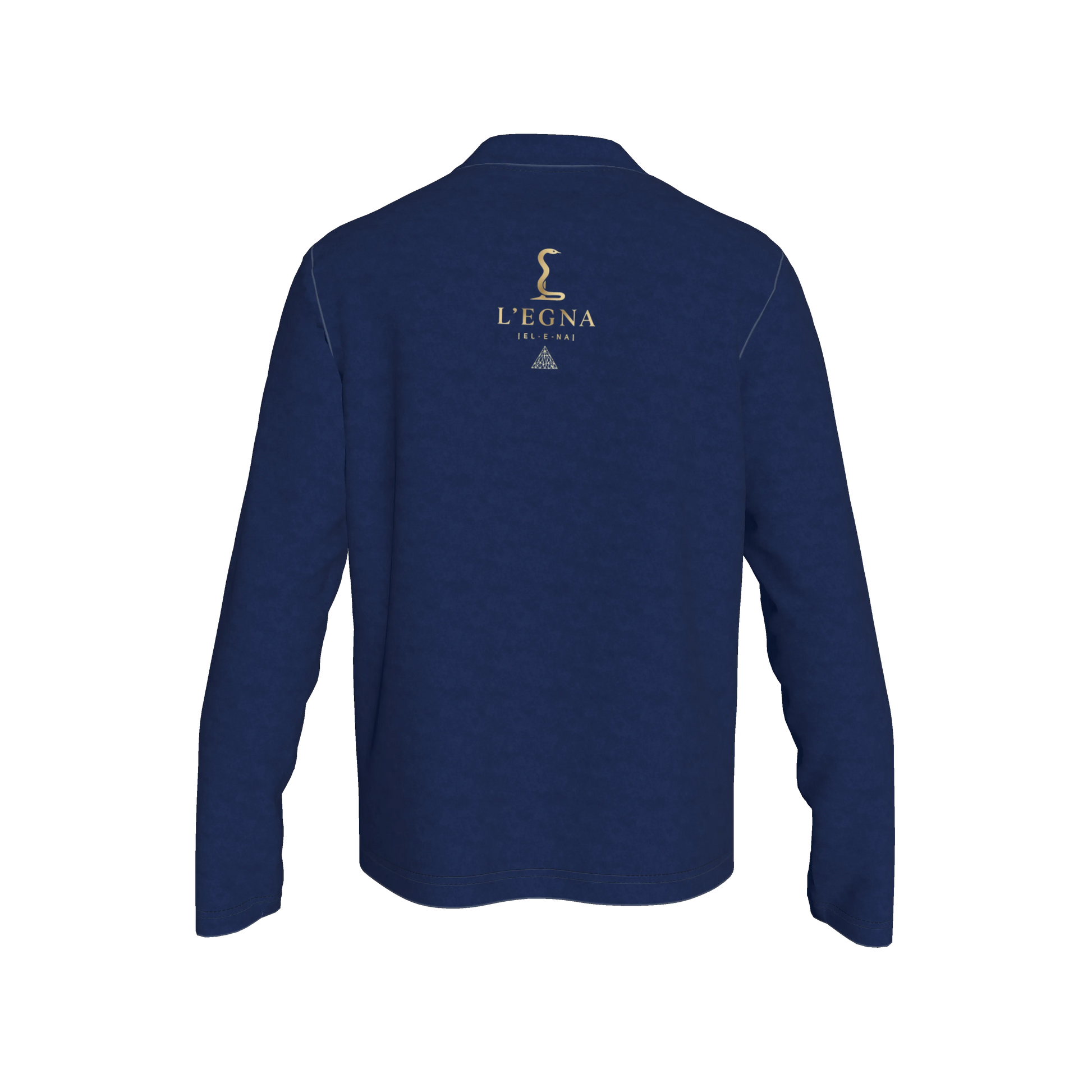 This is the new essential: the L'EGNA RISING 'DEPTH' Cardigan, constructed from ultra-premium heavy French terry in a deep, saturated navy. Its minimalist silhouette is punctuated by sharp, contrast piping, and finished with the brand’s signature abstract emblem in gold at the inner neck and left cuff—a coded nod to those fluent in fashion’s future. 100% cotton, looped for structure and softness, this is the cardigan that curators and visionaries wear to champion cultural evolution. Wear it as your invitation to the next movement—where underground vision lives above the fold.