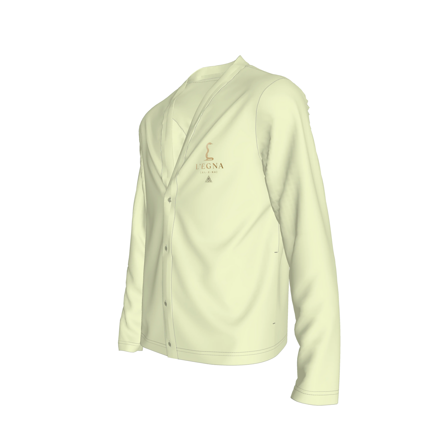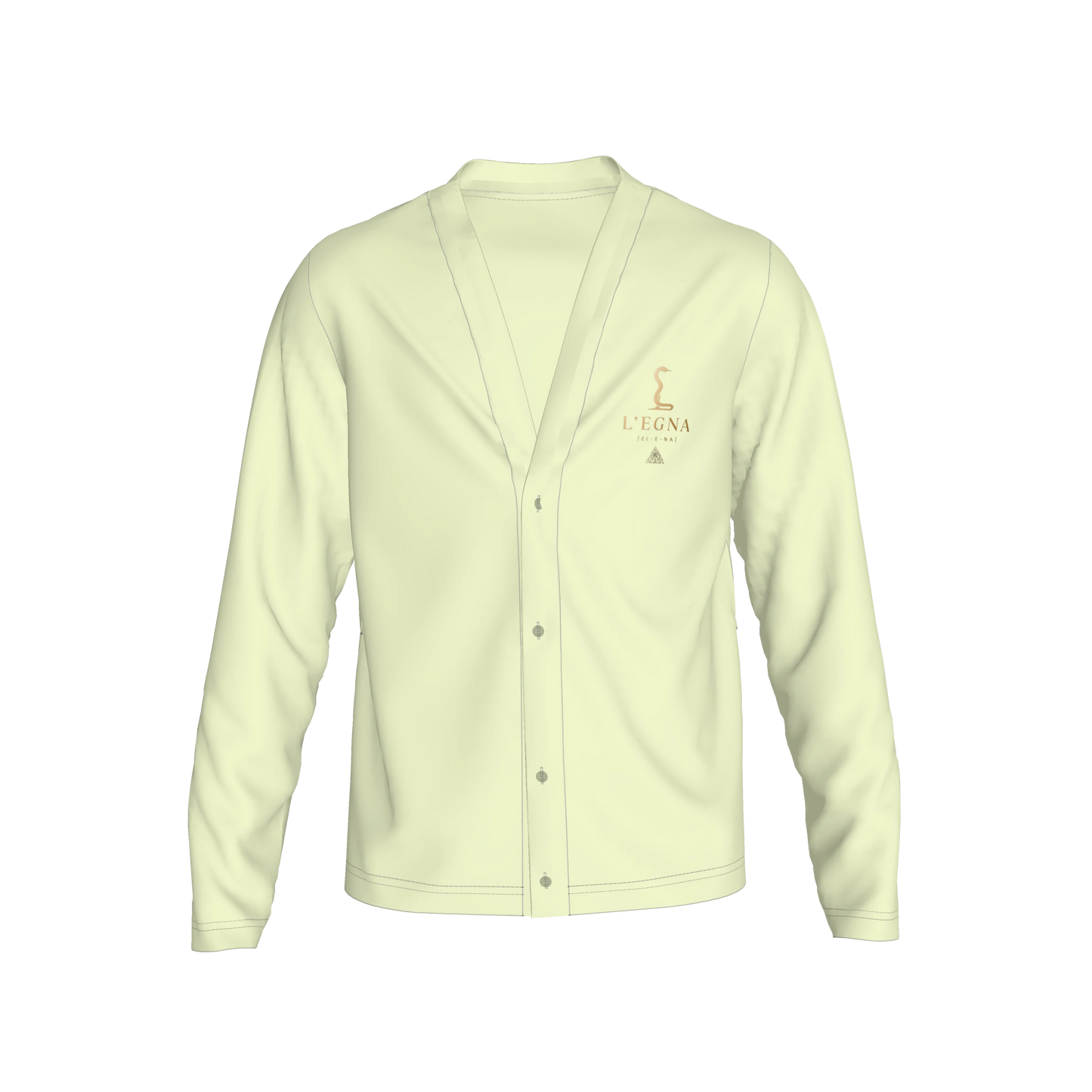 Where vision becomes commerce: L’EGNA’s signature cardigan reimagines the essential layer in a universally flattering buttercream hue. The elevated simplicity of Ponte De Roma—94% cotton, 6% Spandex—offers gentle structure and an ultra-soft handfeel, moving seamlessly from gallery opening to creative studio. A refined gold script logo motif on the chest announces quiet confidence with insider significance. This is the next essential piece for the creative renaissance: clean, understated, thoughtfully curated—because the avant-garde wears well, every day.